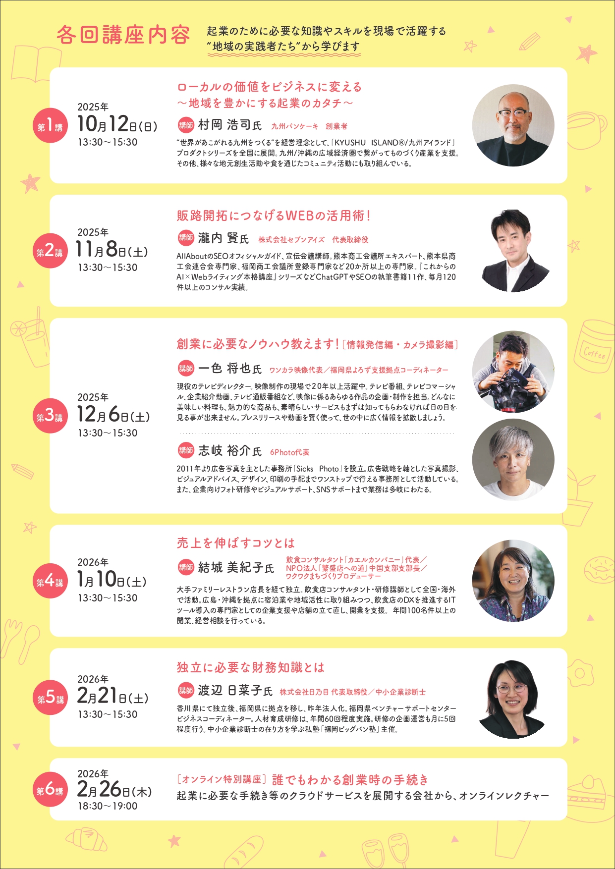 「世界があこがれる九州をつくる」を理念として多数の飲食店を経営するなど、九州各地で様々な活動をされている村岡氏に創業のリアルな体験談等を聞ける貴重な機会です!