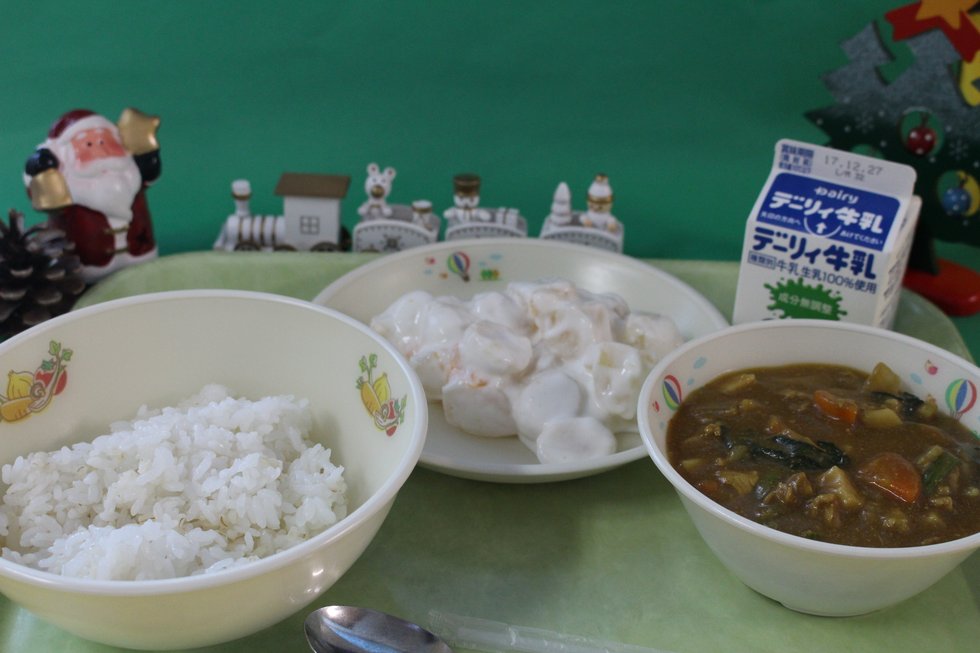 【15日(金曜日)】冬野菜カレー・フルーツヨーグルト・牛乳