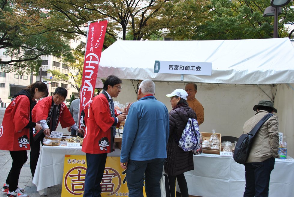 本町の販売ブースでは、私も直接来場者の方々へ吉富町の特産品(味噌、千姫貝、高菜漬)をPRし、試食を召し上がっていただいた方々には「吉富町の特産品を初めて食べた。美味しいです。」と喜んでいただき、「今度吉富町に行ってみよう」という感想もいただきました。